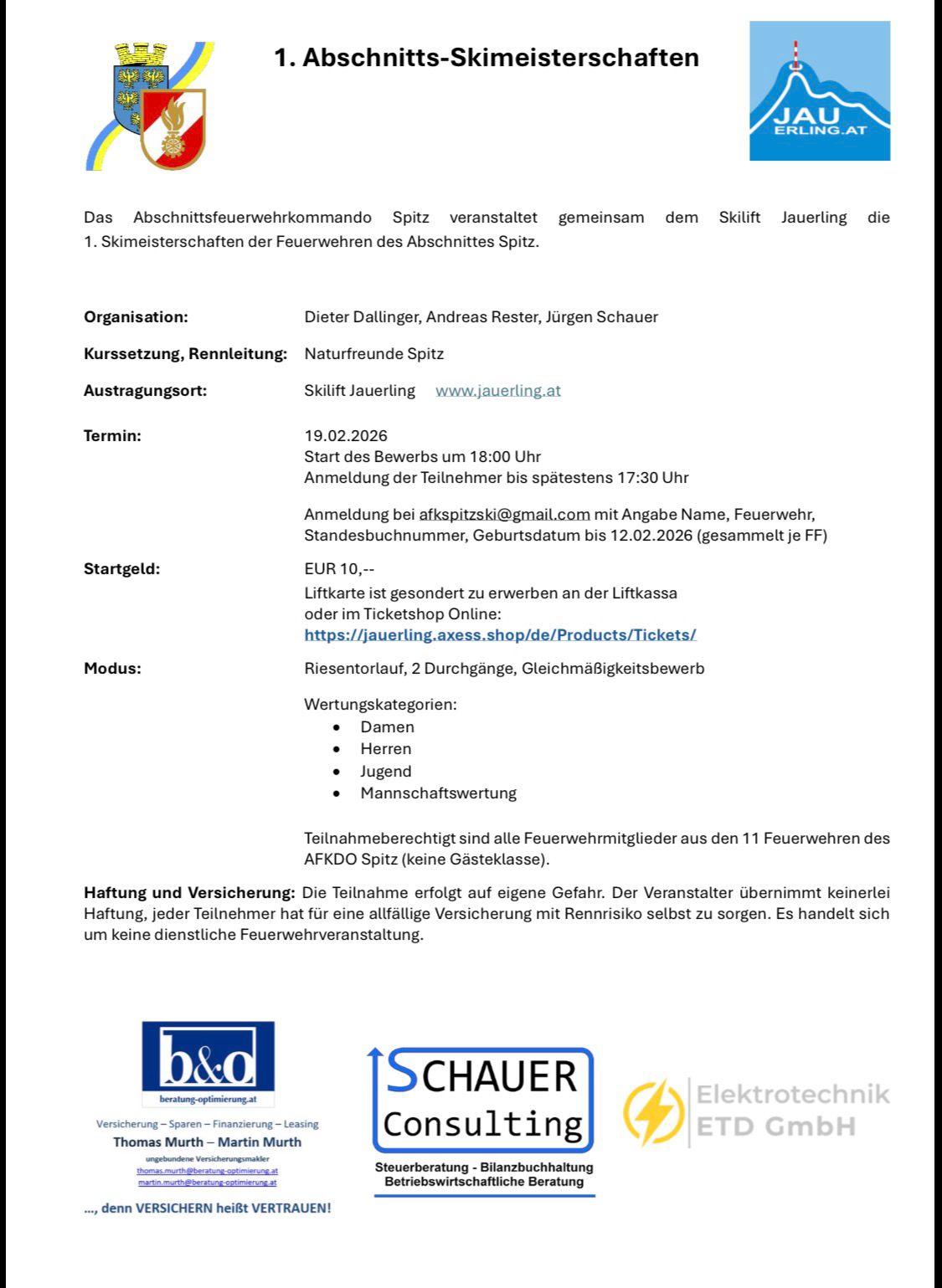Am Donnerstag, dem 19. Februar 2026, veranstaltete der Abschnitt Spitz gemeinsam mit dem Skilift Jauerling die ersten Abschnittsfeuerwehrmeisterschaften des Abschnittes Spitz.