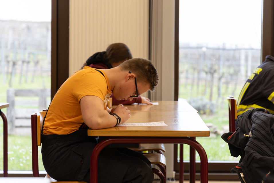 Dabei wird das Gelernte – wie das Absichern einer Unfallstelle, das Aufstellen einer Leiter oder das Kuppeln der Saugleitung – sowohl in der Theorie als auch in der Praxis geprüft.