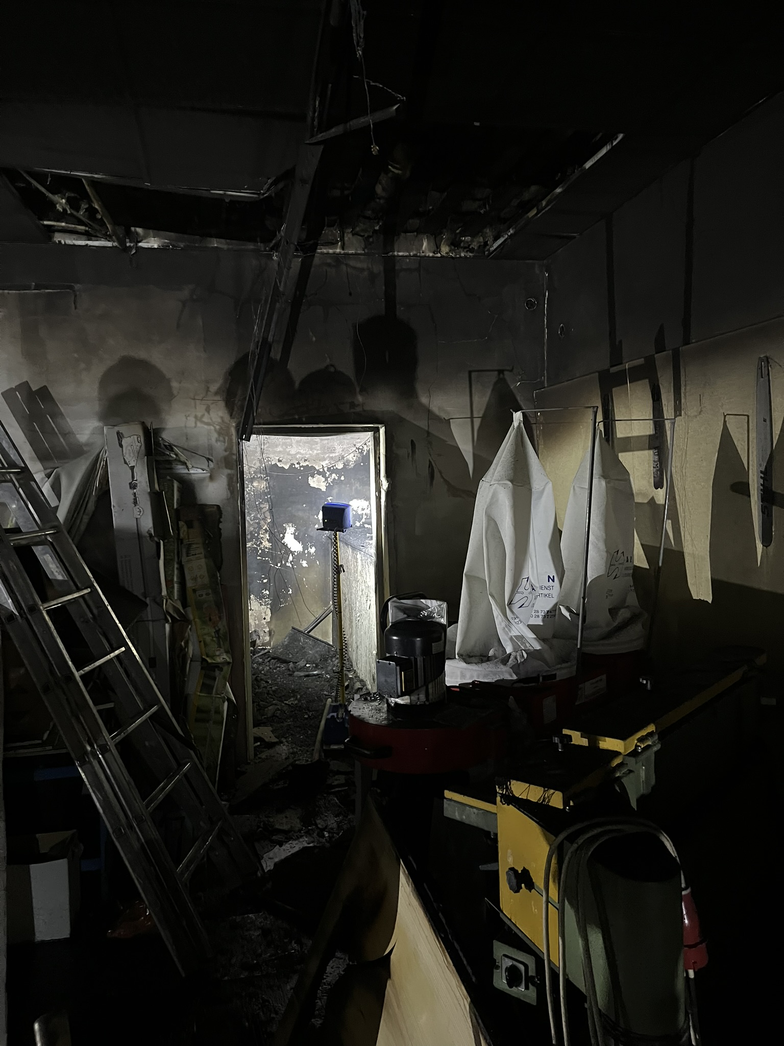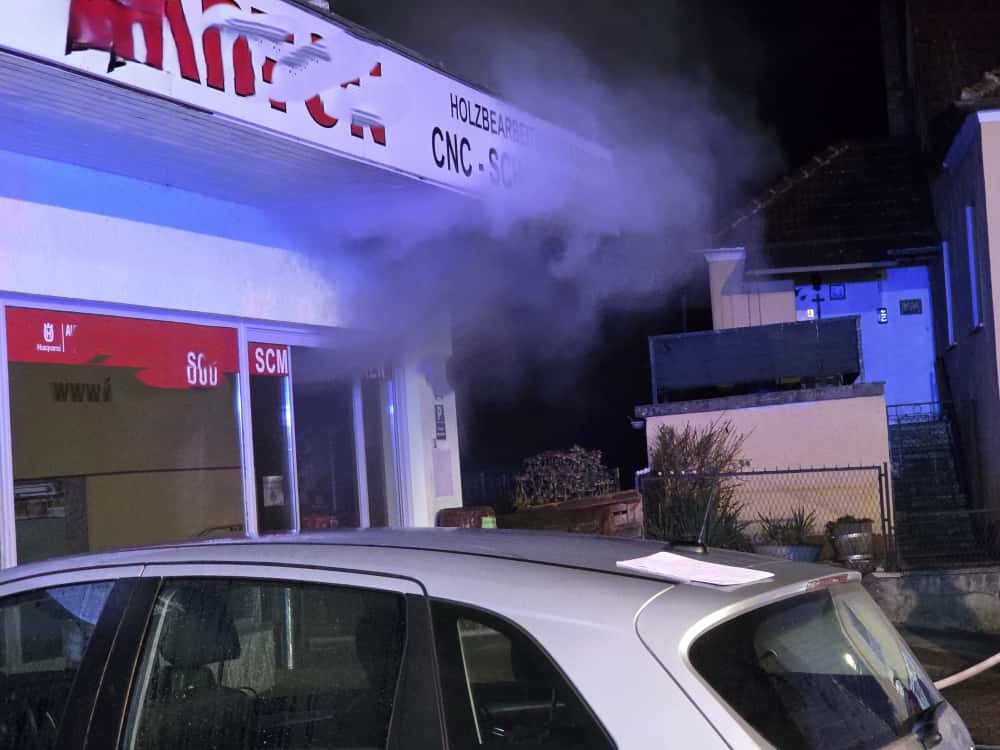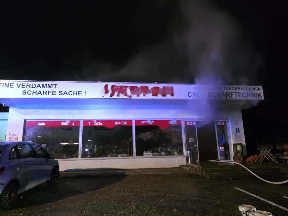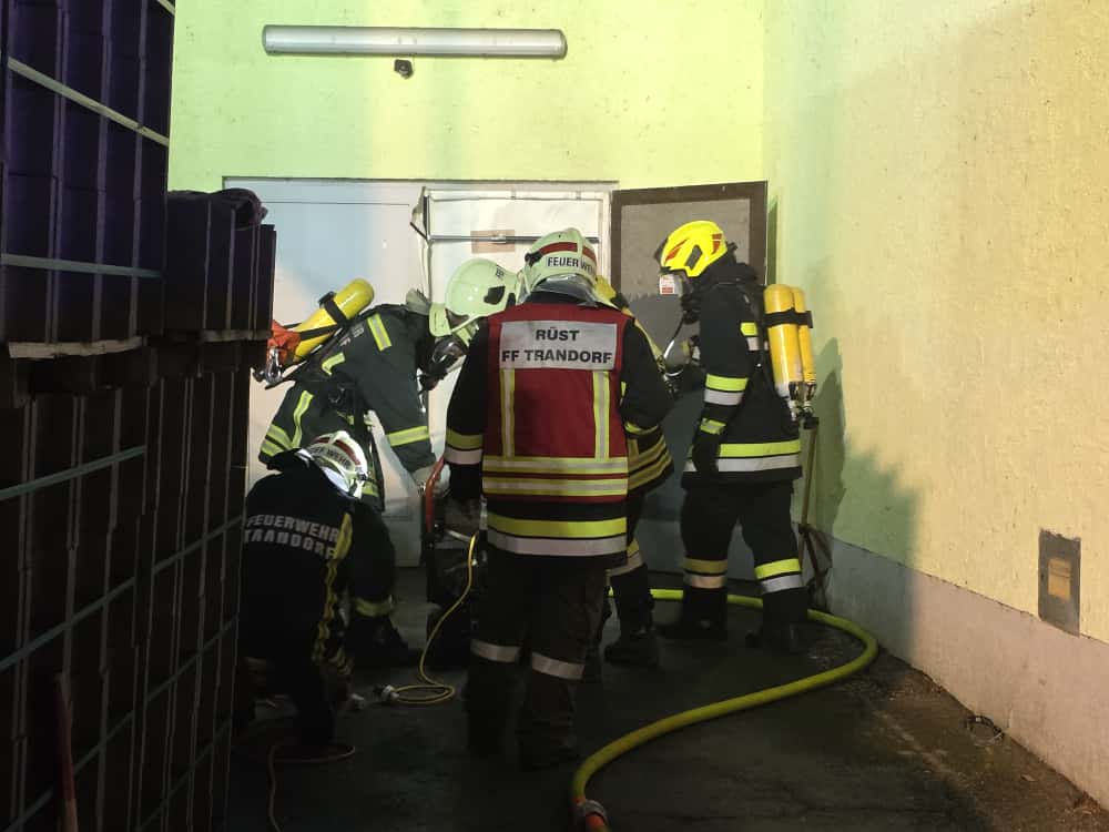 Da die Hitzeentwicklung im Verkaufsbereich bereits deutlich fortgeschritten war, wurde – um die Gefahr eines Flashovers zu vermeiden – bewusst darauf verzichtet, die Eingangstüre aufzuschlagen. Stattdessen erfolgte der Erstangriff über eine Nebentüre im ehemaligen Lagerbereich.