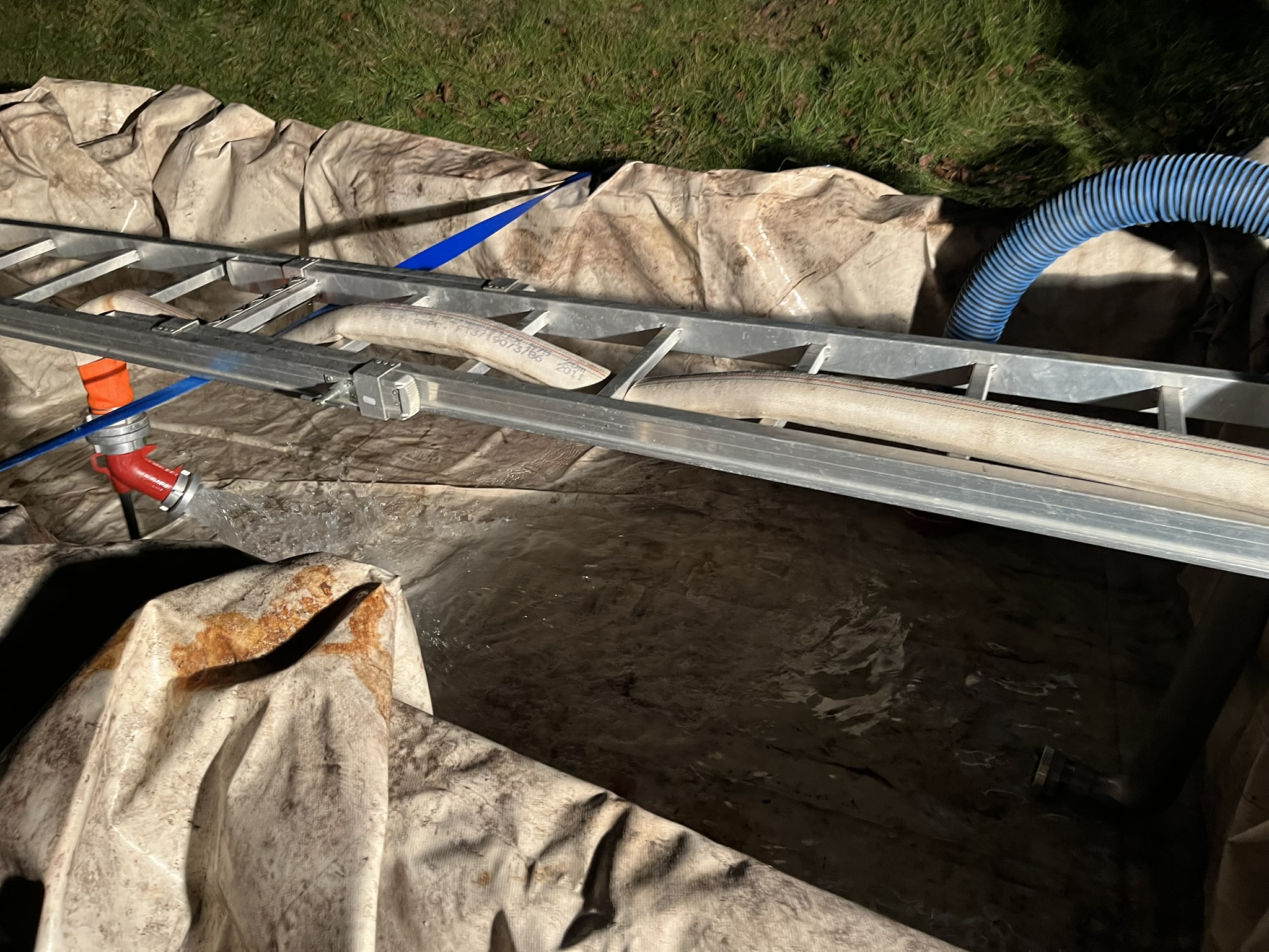 Zum Befüllen des Beckens wurde zunächst eine Leitung vom Hydrantennetz hergestellt.