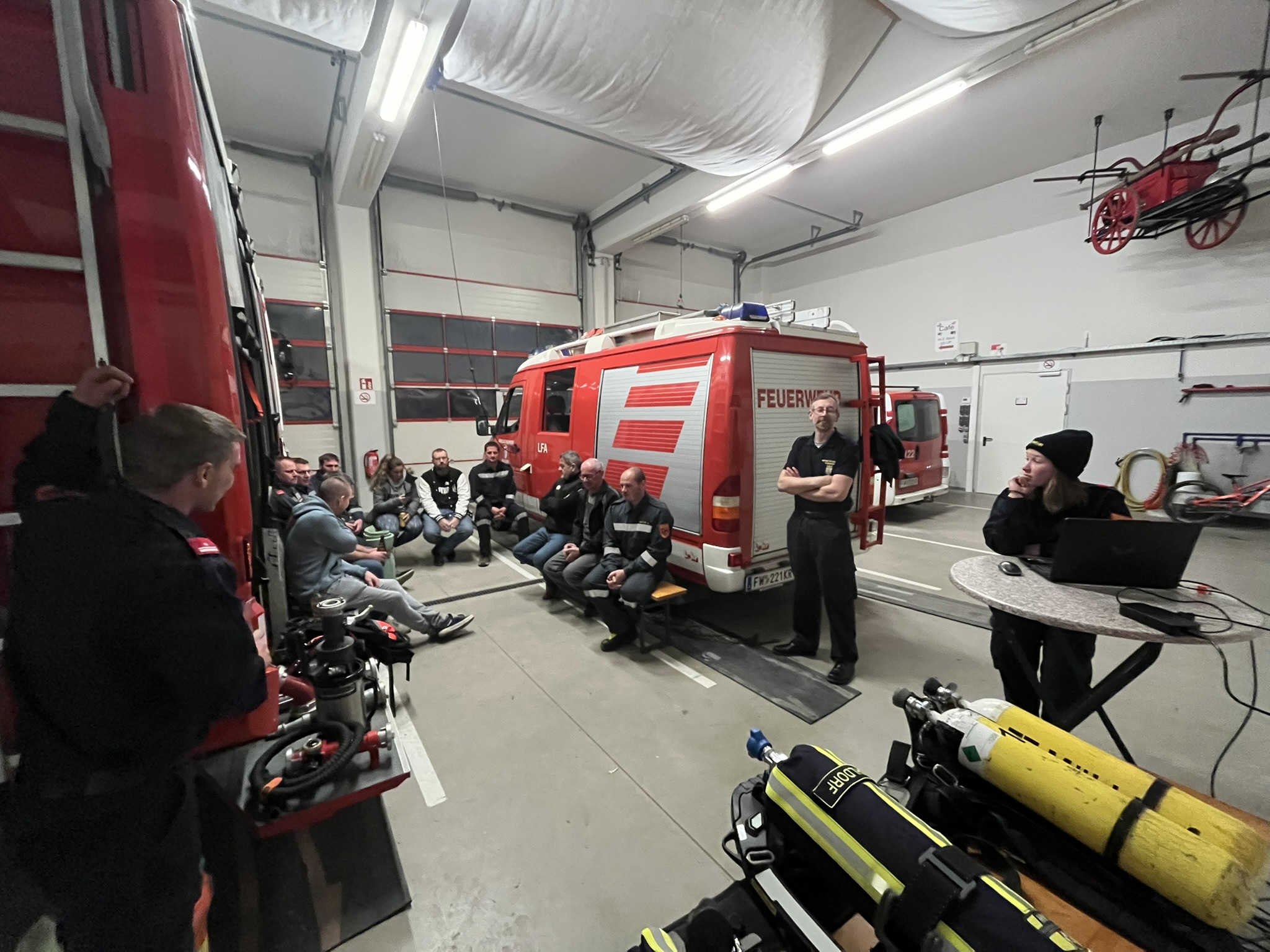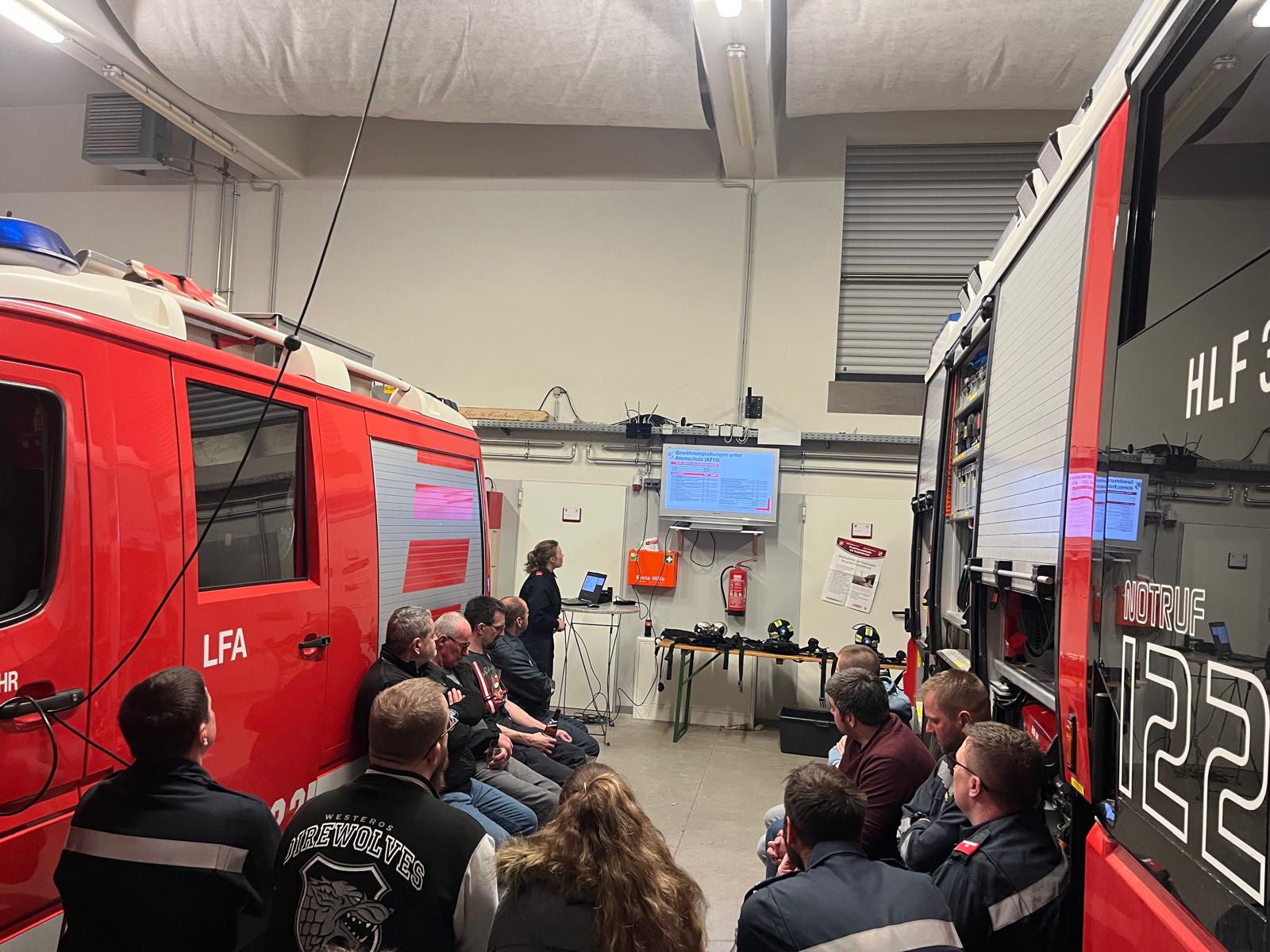 Alina Stierschneider stellte nochmals die im Jahr 2025 neu angeschafften 300-Bar-Geräte vor. Zusätzlich wurden die Grundsätze bei einem Atemschutzeinsatz gemeinsam wiederholt.